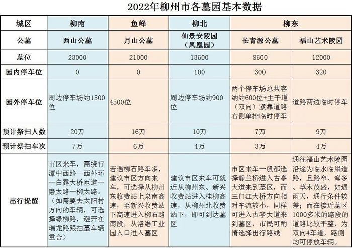 一、柳州市各墓园相关数据(由各墓园工作人员提供)