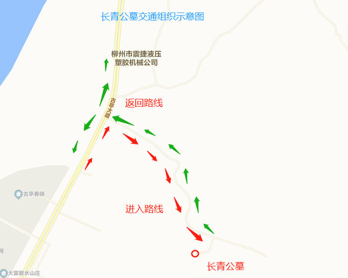 4月5日、6日、9日、10日期间,长青公墓墓园车位停满后,将在古亭大道进入长青公墓的路口实行交通管制,禁止一切车辆驶入园区;在不影响道路通行的前提下,祭扫车辆可沿古亭大道(双向)紧靠道路右侧单排临时停放。车辆返回市区时,可走古亭大道、静兰大桥,也可选择从三门江大桥、桂柳路通行。