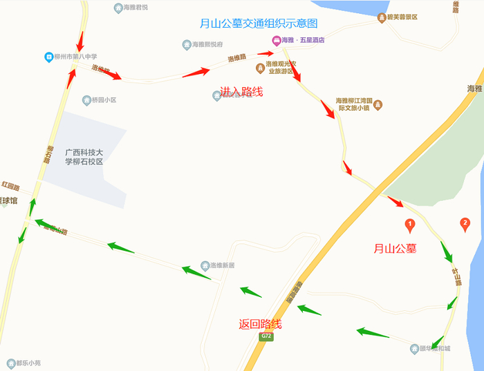 4月5日、6日、9日、10日,每日8时至17时,前往月山公墓的车辆,需沿柳石路洛维路口、洛维路、叶山路行驶至墓园;返回市区的车辆则需走叶山路、葡萄山路至柳石路。