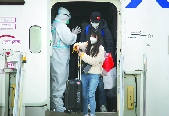 3月9日,中国公民乘坐临时航班抵达兰州中川国际机场。