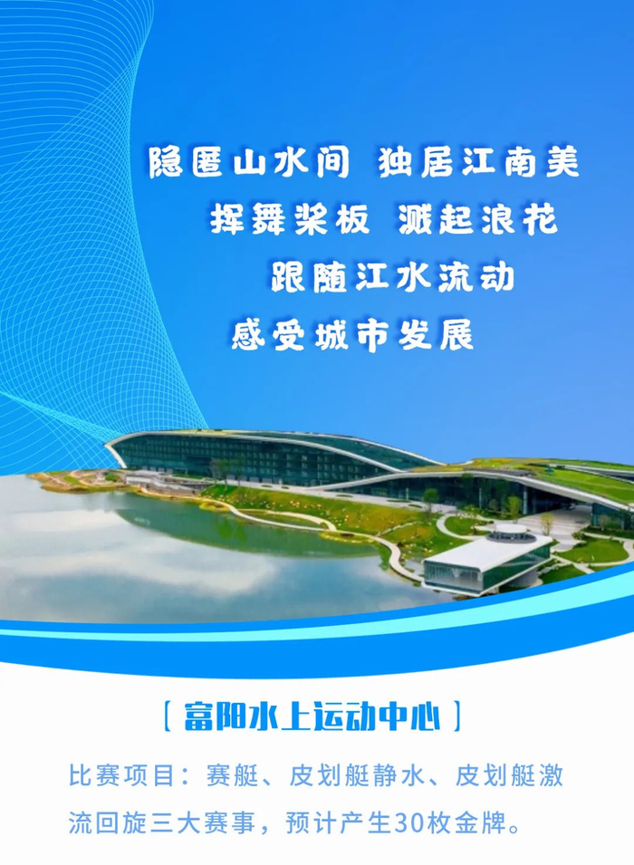 位于北之江南岸的富阳水上运动中心,以富春山水为设计灵感,被国家赛艇协会称赞为“史上最美”赛艇比赛场地。