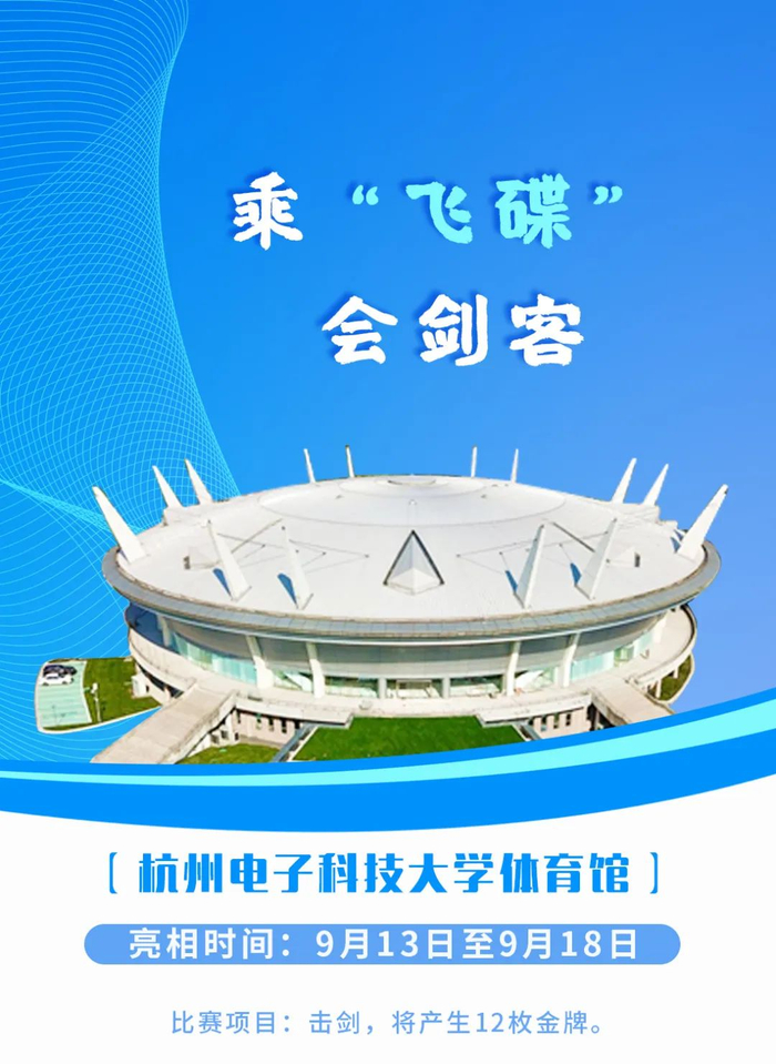 “飞碟馆”原是杭州电子科技大学下沙校区的篮球馆,是中国男子职业篮球联赛的一个赛场,曾作为浙江万马队的主赛场,改造提升后,拥有5条击剑道,可同时容纳5000余位观众在此一览赛事盛况。