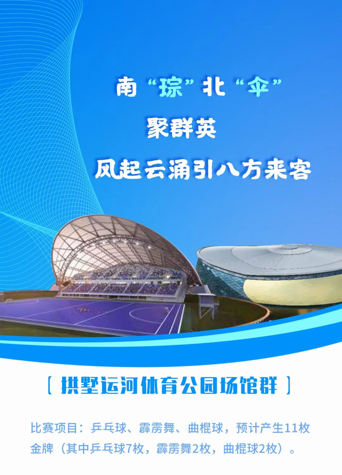 国球乒乓毫无疑问的大热门赛事,现场看国际顶级高手上演“大战”,还有首次入亚的霹雳舞同样将在这座“金玉琮”中开赛。