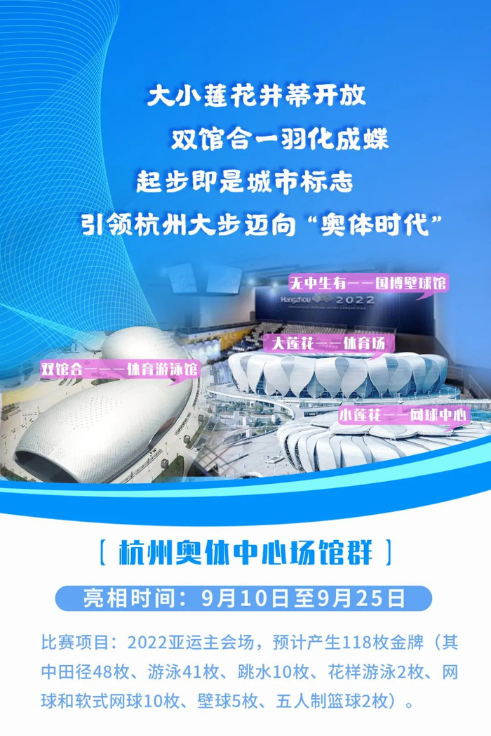 据悉,杭州亚运会、亚残运会共有 56 个竞赛场馆(54 个亚运场馆+2 个亚残独立竞赛场馆)。其中,新建场馆 12 个、改造场馆 26 个(含2个亚残独立场馆)、续建场馆9个、临建场馆 9 个。另有 31 个训练场馆、1 个亚运村和 4 个亚运分村。场馆建设秉承“绿色、智能、节俭、文明”办赛理念,确保满足赛事要求,着力打造亚运场馆建设的“杭州样板”,助推城市建设,展现城市形象,服务市民群众。