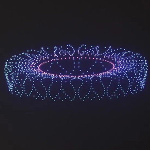 无人机在西湖上空形成杭州亚运会主场馆的图案。 王刚 摄