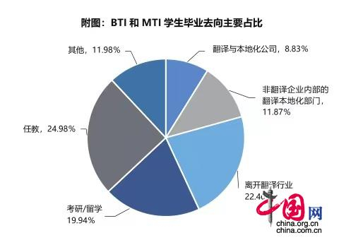 全国翻译本科专业(BTI)和全国翻译硕士专业( MTI)学生毕业去向主要占比。