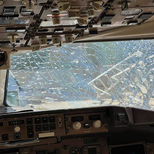飞机上的一名乘客柯克·诺尔顿拍下了破碎的挡风玻璃的照片,照片显示,挡风玻璃上布满数十处裂缝,但没有从框架上掉下来。