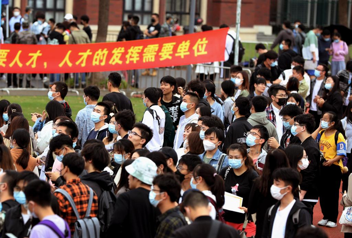 2021年10月12日,2022届上海高校毕业生秋季校园招聘会举办。 新华社记者 刘颖 摄