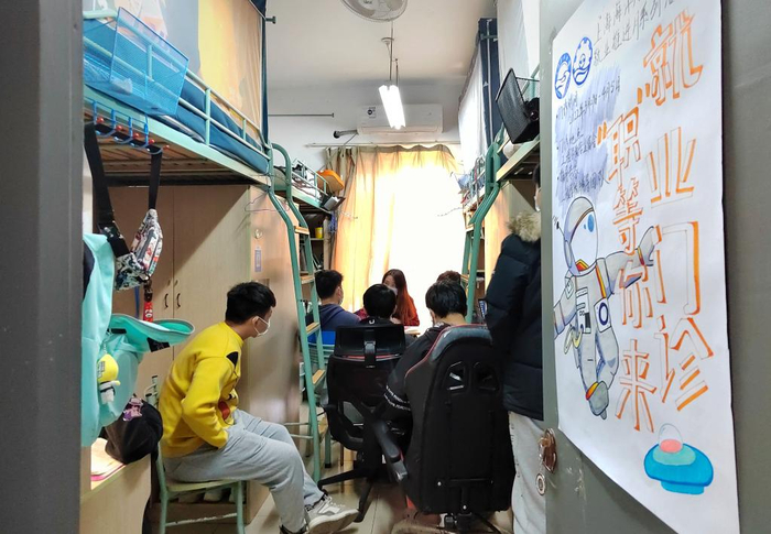 2022年3月29日,上海海洋大学将“简历门诊”服务送进宿舍,方便指导毕业生就业。新华社发