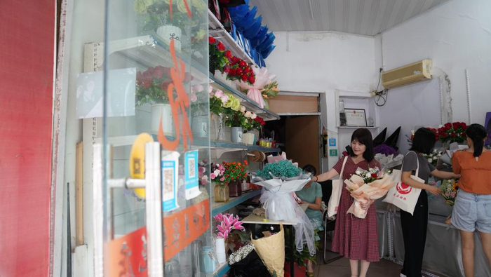 2021年8月24日,彭瑛捧着鲜花准备去看望服务对象。新华社记者 胡晨欢 摄