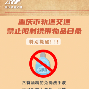 4月3日,重庆轨道交通官方微博发布出行提示,根据《重庆市轨道交通禁止限制携带物品目录》(后简称《目录》),酒精,包括含有酒精的免洗洗手液,均不能带入轨道交通车站、乘车。