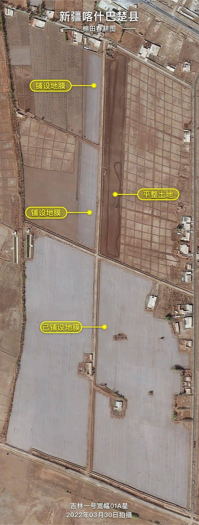 “吉林一号”卫星高清俯瞰,新疆棉田春耕图