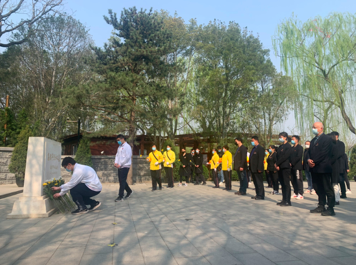 献花寄哀思,各界代表陶然亭公园里祭扫高君宇烈士墓