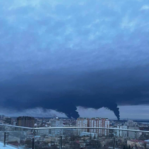 敖德萨当地居民拍摄到,被击中的炼油厂与燃料库冒出浓烟 图源:社交媒体