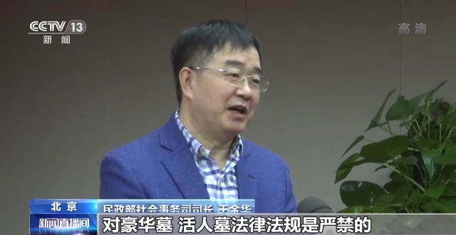民政部社会事务司司长 王金华:对豪华墓、活人墓法律法规是严禁的,一经发现我们会严肃处理,按照相关的法律法规责成当事人拆除,如果当事人不拆除的我们可以申请强制执行。