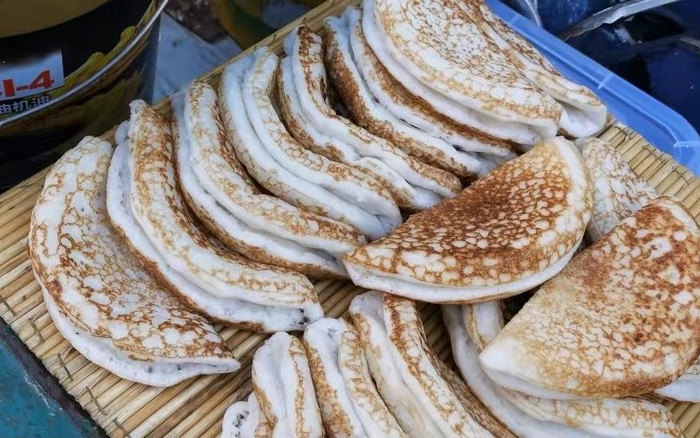 黄煎是陕西北部子长地区的清明传统小吃。这是使用当地谷物硬糜子加工制作的一种食物。将硬糜子加工成米糊,用当地特有的黄煎鏊(制作食物的一种器具)进行煎制,做好的黄煎色泽金黄,边缘厚中部薄,味甜而可口。