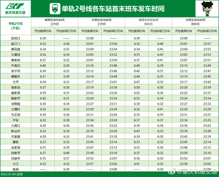 戳图→GET最新重庆轨道交通线网运营时刻表