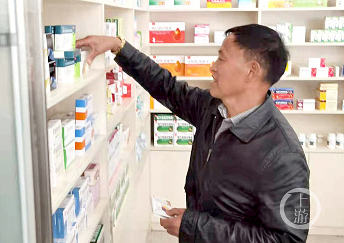 村医廖选明搬离庙堂在大昌镇黄林村落户后,村里为他办好了行医手续,设了岗位,让他安心给村民看病。儿子也接了班,父子俩都成了当地家喻户晓的医生。图为廖选明在药房内整理药品。