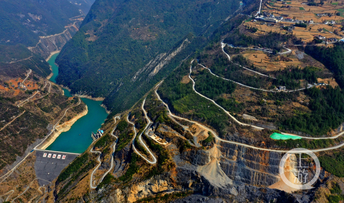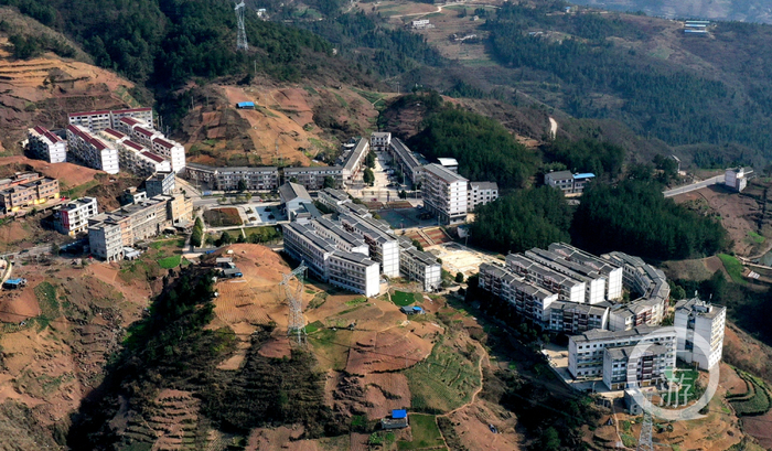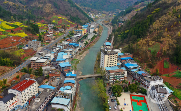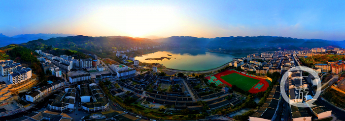 杨晓燕、李斌、廖选明、李守林,都是庙堂乡普普通通的人家。他们通过集中搬迁、插花式、梯级搬迁,分散到各安置点,并享受着新农村公共资源和服务成果。图为航拍绿水青山环绕的两坪乡,当时一部分庙堂人搬迁到这里。