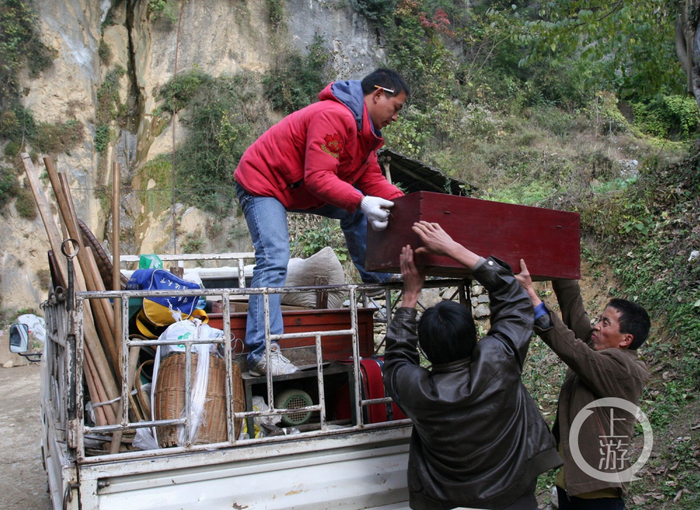 时任巫山县扶贫办主任的朱钦万记得这几笔账。一是发展成本账:搬,比原地发展节省上亿元;二是社会民生账:庙堂乡受高山环境制约,农业生产技术落后。搬,可以从根本上拨掉“穷根”;三是生态效益账:庙堂乡位于自然保护区五里坡,与神农架为邻。搬,能避免破坏生态功能。图为2008年11月,庙堂乡当地居民进行搬迁工作。芦先庆 摄