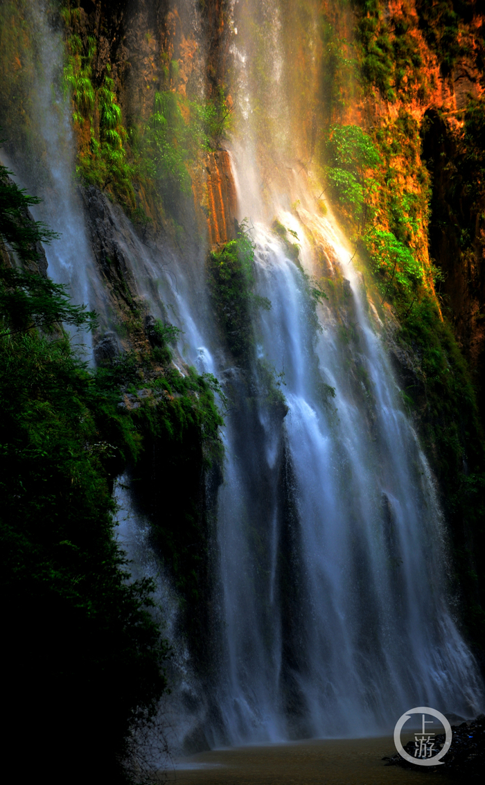 朱钦万时常会想,如果庙堂乡还在,可能就没有五里坡这个珍贵的“世遗”。“从这个意义上来说,再次证明,搬对了!”庙堂乡从行政版图上永久消失,并入五里坡保护区。但旧址上一棵千年油杉树保留了下来,见证山河变迁。图为难得一见的五里坡瀑布群,阳光下光彩照人。