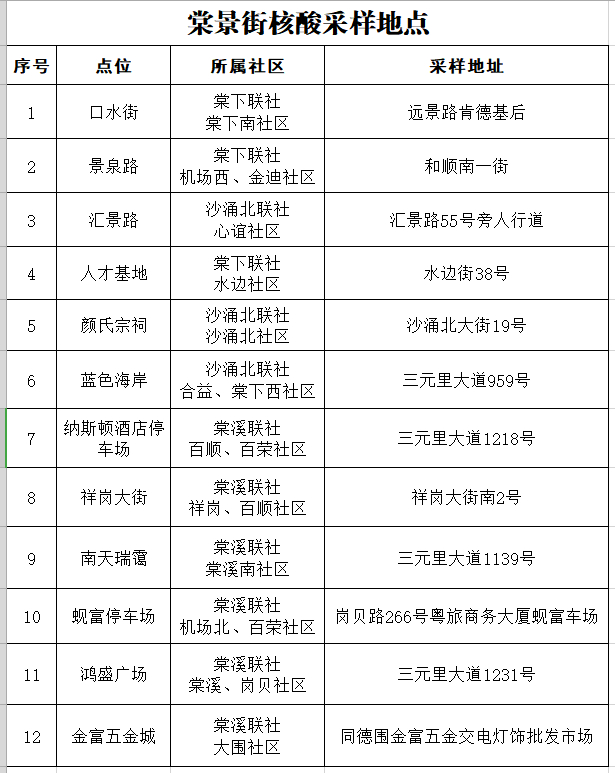 白云区重点场所附近核酸采样点一览表