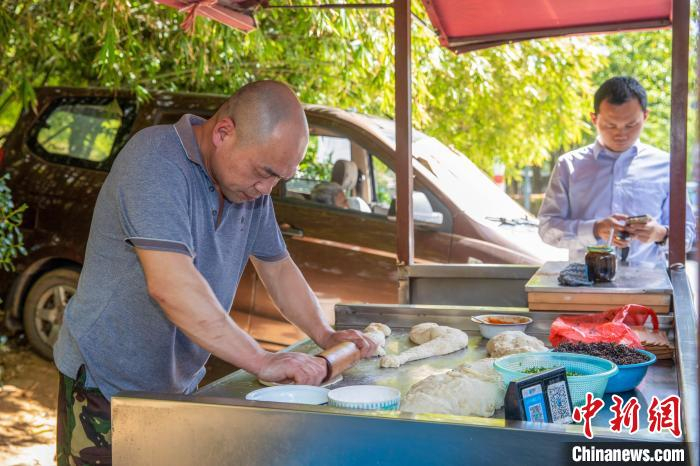 “做烧饼讲究用料新鲜实在。”在上手练习一段时间后,曹加齐就骑着三轮电瓶车开始出摊了。在卖烧饼的过程中,他用心收集顾客的意见并对烧饼进行改良。就这样,他的烧饼越来越像样,也吸引了不少回头客。