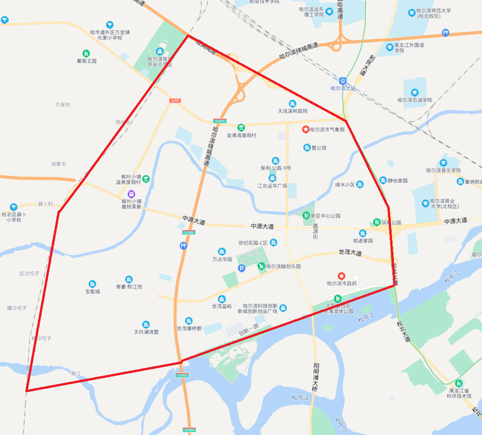受影响区域如下:东至松北大道,西至宝能城,南至滨水源大道,北至万宝大道延伸至万宝田园小区、美澳阿卡迪亚、天成溪树庭院合围区域。(包含以下地点:万宝田园小区、美澳阿卡迪亚、天成溪树庭院、泰豪熙江悦、奥特莱斯枫叶小镇、天玖澜湾墅、保利公园九号、香树湾、保利水韵长滩、绿水小区、哈医大四院、有色大厦、红星威尼斯庄园、阳光雅居、半岛首府、墅公馆、左岸人大之家、湖畔绿色家园、永安城、龙鸿宜家、奥林小镇、运华广场、翻身岗、润恒物流园、锦绣家园、欧美亚阳光家园、中海和院,上院、润和城、融创中园、万达华园、万达秀园、世纪花园、盛世香湾、唐宁郡、融创茂、慧时代、华润静安府、华润万象汇、玉龙湾、荷兰城、大正笠江、金色江湾、北岸明珠、城市之星、地中海阳光、钻石湾、世茂翡冷翠、世茂蓝屿、世茂香缇雅、世茂毕索小镇、世茂康桥郡、交警大队、49所、九州医药、瀚邦医疗四海园、北岸众和城、北兴小区、电业局家属楼、大正莅江、锦观城、宜和园、中盟首府、永泰郦郡、玫瑰湾智园、融创锦园、融创融园、世茂一期一区、世茂一期四区、龙鸿怡家、鑫丰云筑、恒健橘子郡、前进家园、森林警官宿舍、凯利汽配广场、凯利家生活、大正臻园、红星御园、保利观澜、观澜居、大王家、华润幸福里、社科家园、汇锦御江湾、泰豪熙江悦悦廷、世茂都柏林等)。