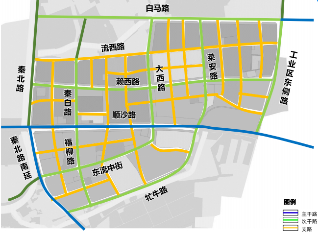 规划范围内规划道路里程总计31.66公里,其中城市主干路(一级公路)2.69公里,城市次干路11.52公里,城市支路16.75公里,二级公路0.70公里。