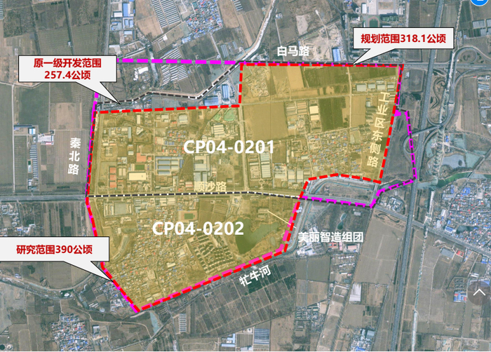 本次规划范围为CP04-0201、CP04-0202街区范围,划范围西起秦北路,东至工业区东侧路,北起白马路,南至牤牛河,面积约318.12公顷。