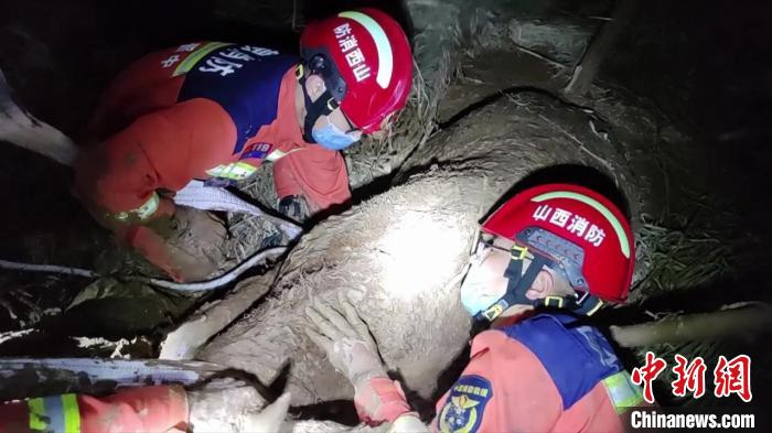 介休市金融路消防救援站消防员于21时许到达事发现场时,发现这头母牛只有牛头和牛背露在外边,周围都是厚厚的泥浆。好在,村民前期救援期间已经在母牛周围铺设了草垫子、木板,创建了一个简易作业面。