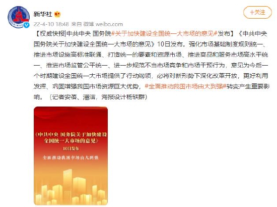 《中共中央 国务院关于加快建设全国统一大市场的意见》发布