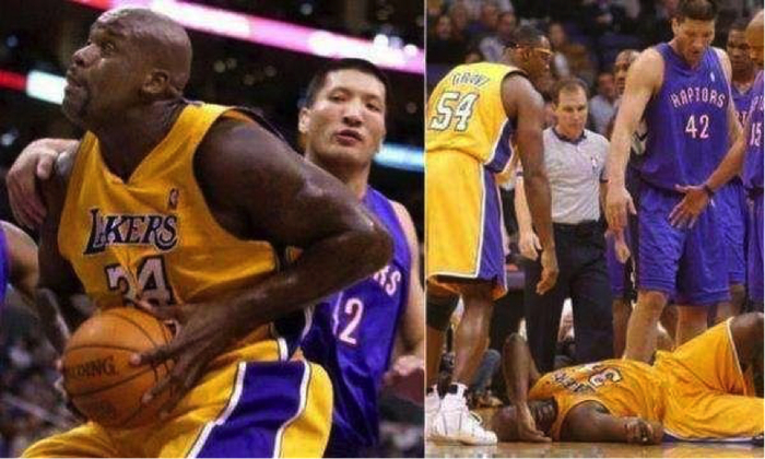 5号位,孟克·巴特尔(1975年出生),身高211cm,体重132kg,中国男篮三大中锋之三。关于他有多猛,看看躺地上那位就知道了。