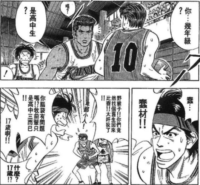河田雅史和樱木花道看了看对面,绝望之余感到庆幸:那个2米多高的蒙古人总算没在了!