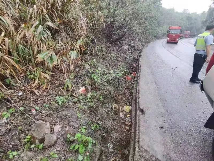 经调查,该事故发生路段为上下坡路段,加上雨天路面湿滑,半挂车实施转弯时未减速,车尾与其同向行驶的摩托车发生碰撞,导致摩托车失控翻出路外。
