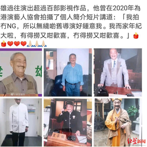 提起梁雄的名字,可能很多人不太熟悉,但一看到他的脸,大家一定会恍然大悟:不就是经常在港剧里演保安那位老伯伯吗?事实上,梁雄拍戏已经70多年了,曾参演《黄飞鸿四大弟子》《打雀英雄传》《龙的传人》《大时代》《重案组》《打擂台》等影视剧。虽然只是作为配角,但梁雄依然保持着对演戏的热情。多年前他曾在录制的短片中说:“我拍戏都不NG,所以无线的旧导演都喜欢用我。我现在年纪大啦,有得做也是这么欢喜,没得做也是这么欢喜。”