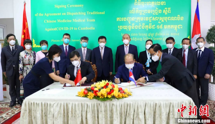 2022年1月25日,《中国国家中医药管理局与柬埔寨卫生部关于派遣中医抗疫医疗队赴柬埔寨工作的协议》在柬埔寨签署。中新社记者 欧阳开宇 摄