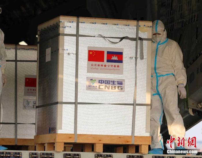 2021年2月7日,中方援柬首批新冠疫苗抵达柬埔寨金边国际机场。中新社记者 欧阳开宇 摄