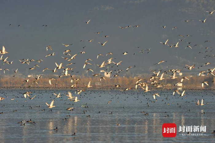 这里是拉市海,云南省第一个以“湿地”命名的自然保护区,2004年被列入“国际重要湿地”名录。近日,拉市海的10万候鸟“居民”迎来一位新“客人”——水凤凰。拉市海高原湿地省级自然保护区管护局负责人张瑛告诉封面新闻记者,为了这10万“居民”和“新客人”,自2018年开始,拉市海湿地34户临水居民选择搬迁,还聘请了25名当地群众为它们保驾护航。
