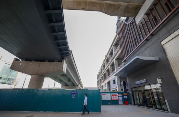 “自从去年底S1线剩余段开通,每天,我们都伴着S1线施工。”站在屋面之上,刘北平细细叙述。刘北平的身份,是北京城建道桥集团苹果园枢纽南区标段项目经理,而他脚下的建筑物,就是苹果园综合交通枢纽的一部分,建筑面积约10万平方米的枢纽南区。