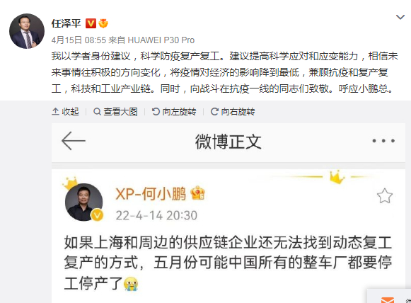 客观地说,近期任泽平除了贡献八卦与谈资外,也在涉及民生的关键问题上发表看法。4月15日早间,他表示“以学者身份建议,兼顾抗疫和复产复工”,并致敬一线抗疫同志。