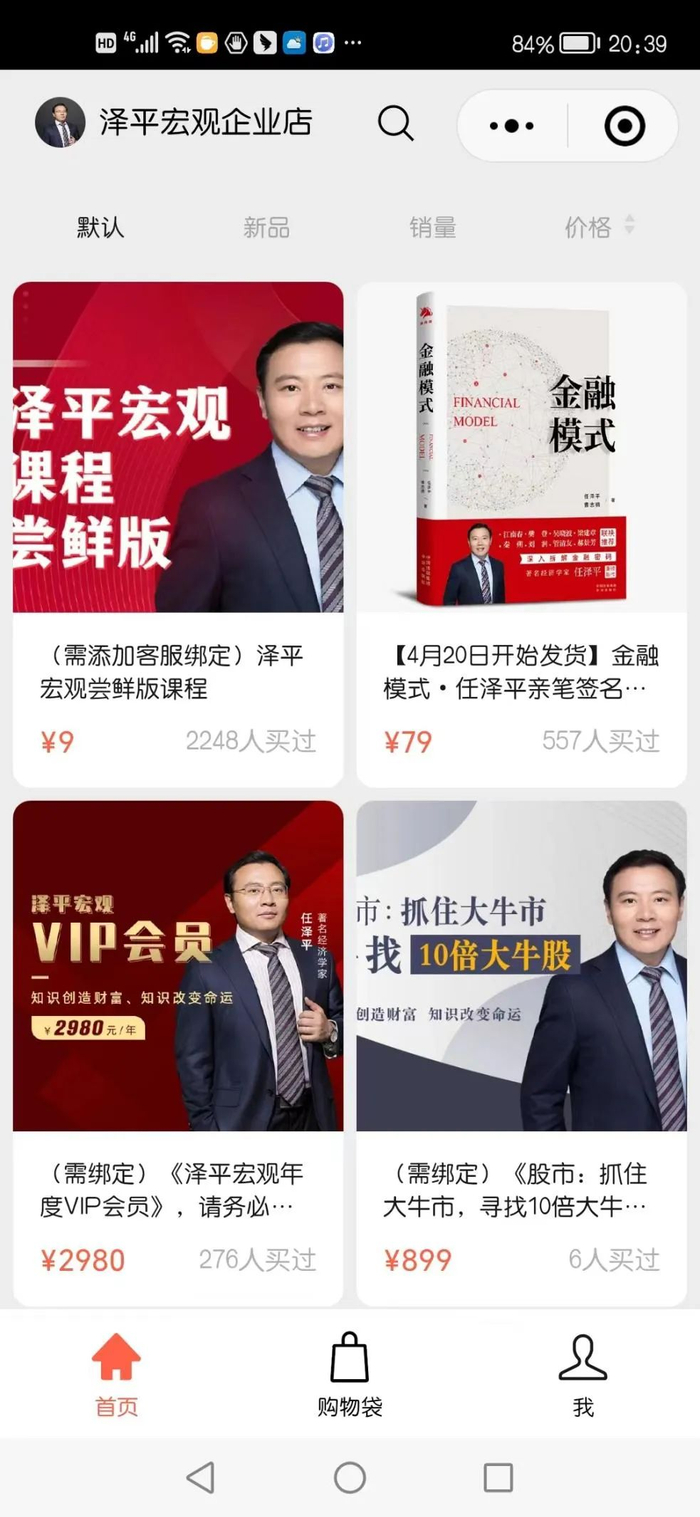 目前的企业店中,最贵的是《泽平宏观年度VIP会员》,定价2980元,有276人买过;最便宜的是9块钱的尝鲜版课程,有2248人买过。