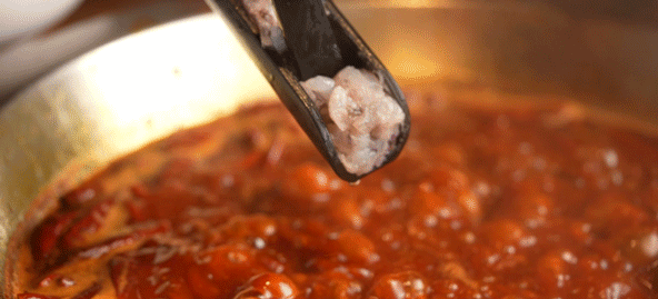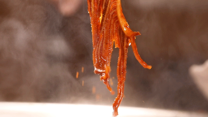 它的骄傲就是,5年来坚持一次性用油,每一份锅底足足放了4斤牛油,汤汁特别浓厚,这就是老成都的特色全红锅!