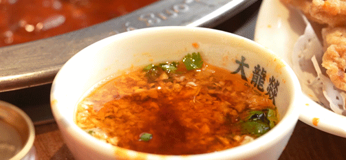 神仙毛肚跟红油锅的洗礼,再蘸上一点酱料,呼呼气一口吃下,鲜嫩入味。