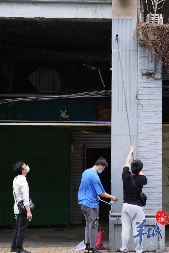 除了市民与商家,记者当天还在该路段及附近的高第街都看到了不少对周边老旧建筑进行登记与测量的工作人员,他们在对建筑物的外立面及其安全性进行记录、查看还有拍照。