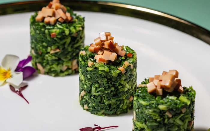 米其林一星北京瑜舍京雅堂推出春季菜单,主厨李冬向来讲究时令与食材的紧密关系,此次菜单中的鲜笋、慈姑、马兰头等,都是充满春季风味的特色食材。其中一道凉菜马兰头豆干,最具春日韵味。据介绍,来自江淮地区的马兰头极为珍贵,唯有三四月份最鲜嫩,搭配豆干,微微调味,清爽可口。另一道春日招牌菜是金银瑶柱煮春蚕,每到春天,新鲜蚕豆上市,青绿鲜嫩,粒大饱满,配以瑶柱和广东菜心,一起放入鸡汤烹煮,鲜上加鲜,将无限春色浓缩。