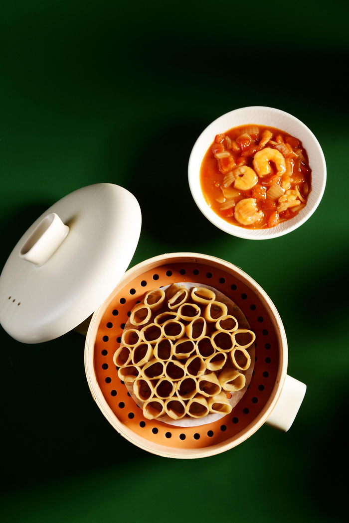 相比冬日的滋补,春季饮食更偏向清爽健康。因此,李冬将山西十大面食之一莜面栲栳栳纳入春季菜单,工艺讲究,口感劲道,配上番茄、虾仁以及洋葱制作的卤汁,酸爽开胃,鲜香四溢。