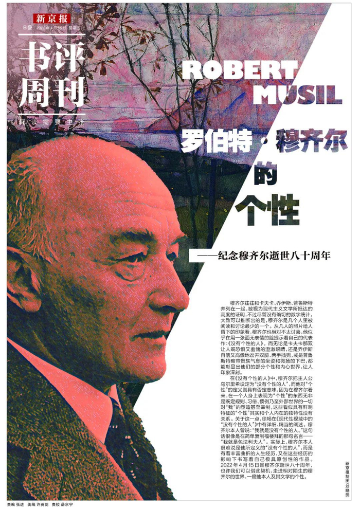 本文出自《新京报·书评周刊》4月15日专题《罗伯特·穆齐尔的个性——纪念穆齐尔逝世八十周年》的B02-B03。