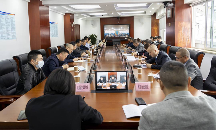 ▲ 主场会议现场。视频会议还设有分会场,各市(州)、县(市、区)住房城乡建设主管部门、物业管理部门、行业协会、部分物业服务企业相关负责人共计1000余人在线参会。