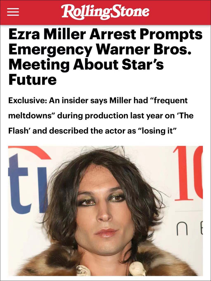 去年,就有人爆料,米勒在《闪电侠》的拍摄片场“经常性地崩溃”,尽管他没有大喊大叫也没有突然的暴力,但他的状态很“失常”。